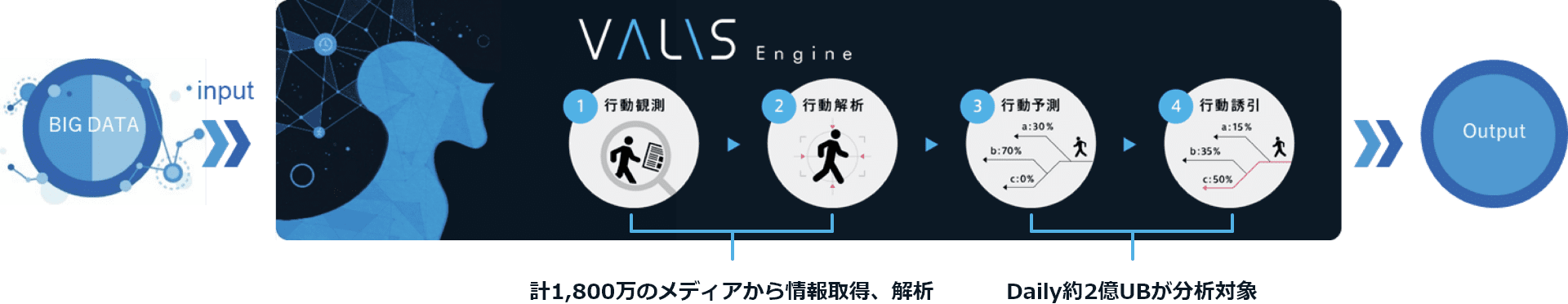 「VALIS-Engine」のテクノロジーを商品やサービスに導入することで「貰って嬉しい広告」「機会損失の最小化」の実現を目指しています。