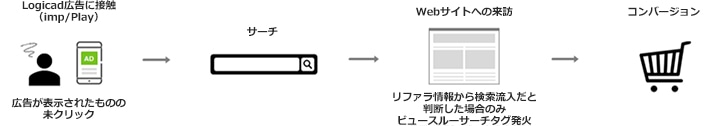 Logicad広告接触後に検索エンジンから流⼊した数を可視化します。